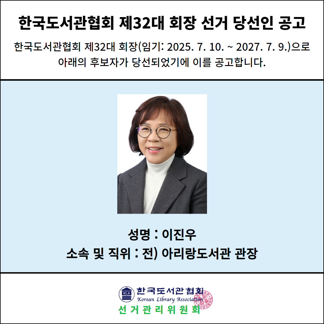 1. 한국도서관협회 제32대 회장 선거 당선인 공고