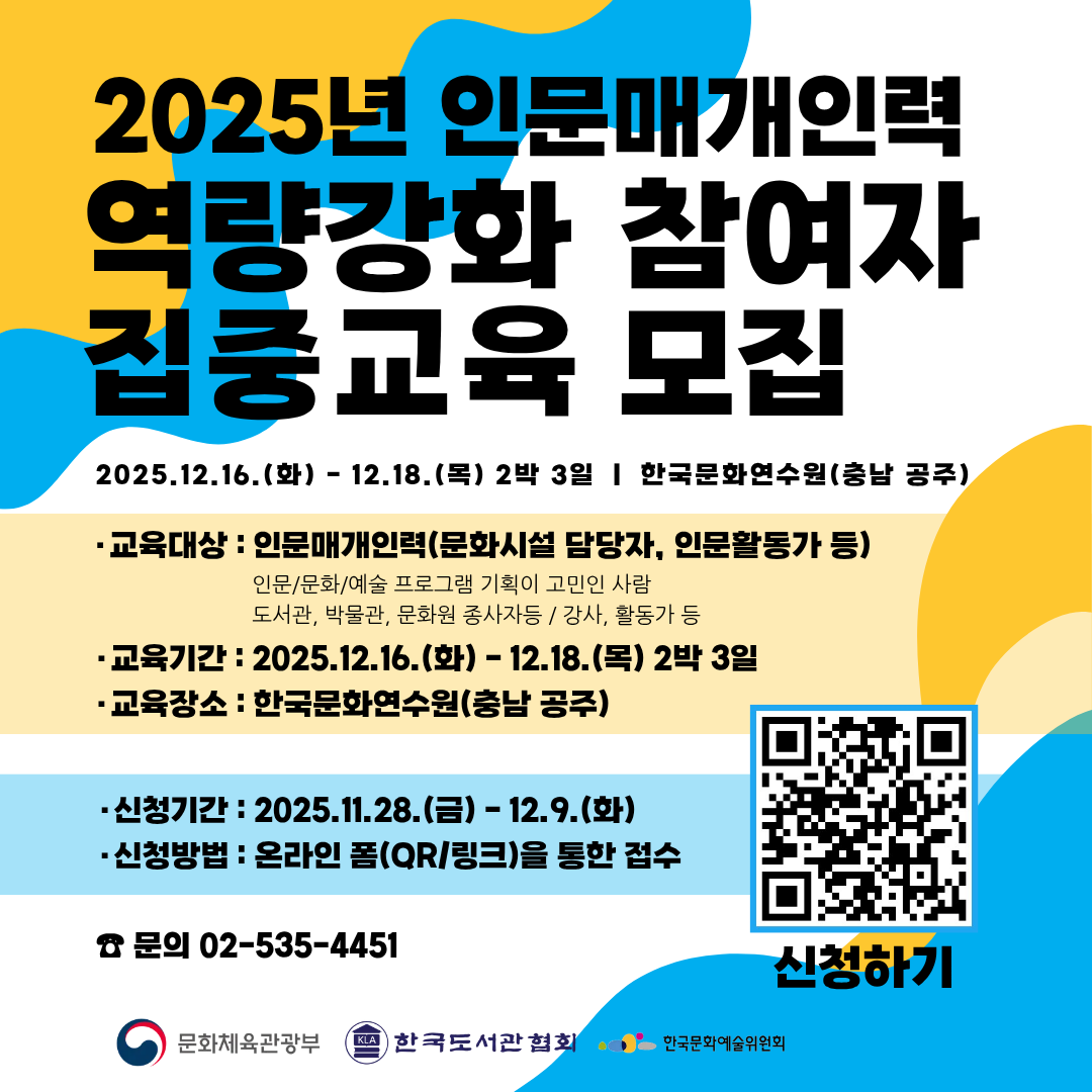 5. [모집] 2025년 인문매개인력, 역량강화 집중교육 참여자 모집 (~12/9)