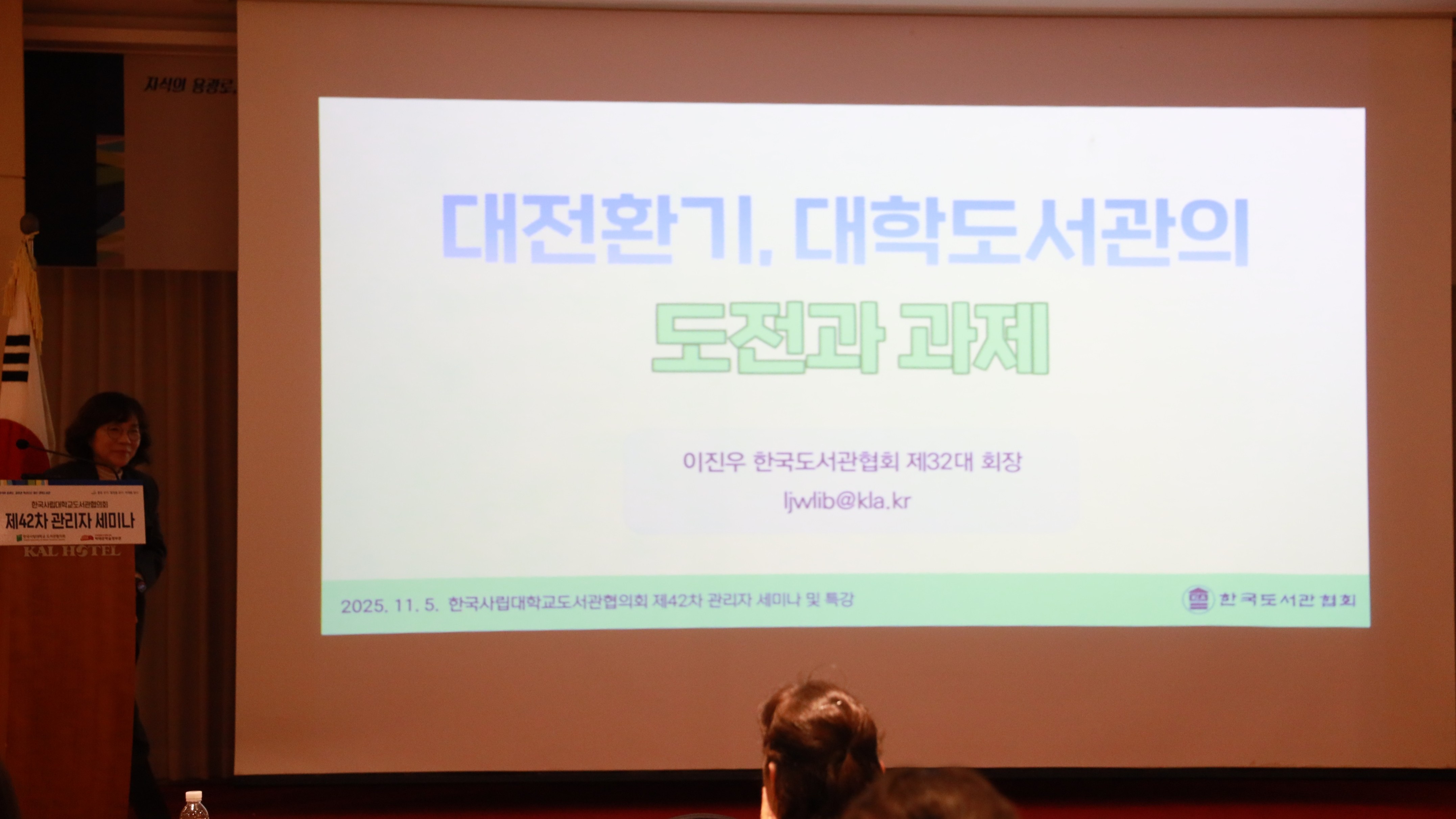 - 11/5(수) : 이진우 회장, 한국사립대학교도서관협의회 제42차 관리자 세미나 특강 진행